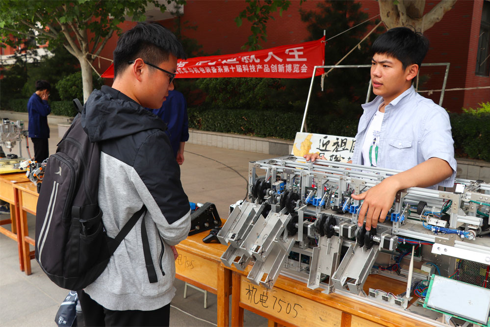 5月8日,鐵道機車與機電裝備系舉辦了第十屆機電產品創新博覽會。本次展會設獲獎產品區、自主創新產品區、機器人產品區三個展區,近20件優秀產品亮相展會。參觀過程中,產品設計者和解說員向觀眾現場演示作品、講解設計原理和應用特點,并就產品的設計理念、人性化的功能設計和巨大的市場推廣價值與設計者進行了交流。很多外國友人也參與到創新產品的互動體驗中,在工作人員的熱情引領和翻譯人員的細致講解下,詳細了解了產品的設計思路和應用特點,在驚喜贊嘆之余紛紛拿起手機錄像留念。