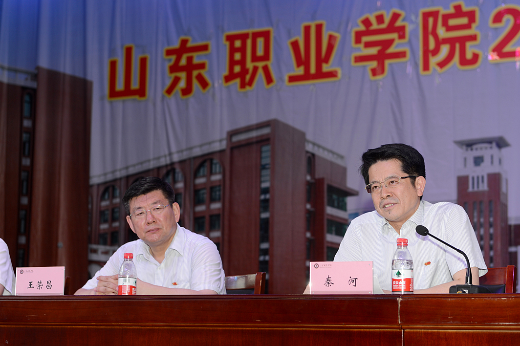 院長秦河在典禮上發表了熱情洋溢的講話。他指出,山東職業學院有著近70年的辦學歷史和優良辦學傳統,學校辦學的初心就是立德樹人、育才造士,為國家造就棟梁之才,為學子鋪就成才之路。三年前,3977名同學懷揣希望、意氣風發的來到學校。三年里,大家在這里刻苦學習知識、苦練基本技能,留下了堅實的足跡,收獲了豐碩的成果。