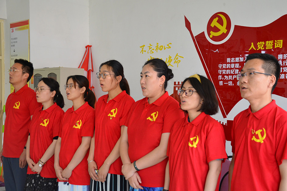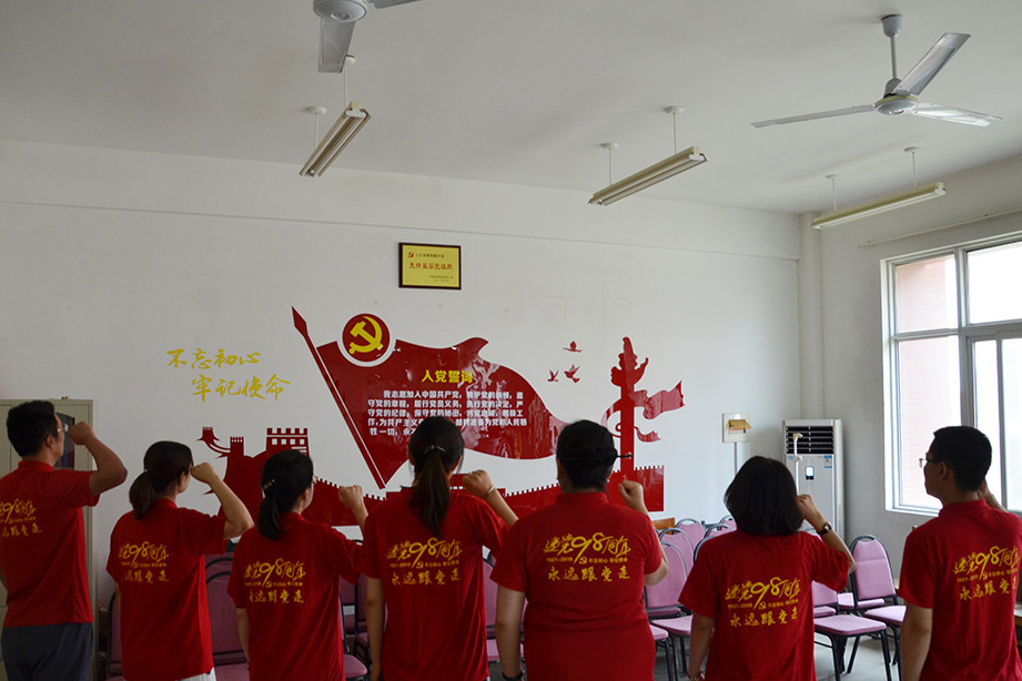6月28日,學生黨支部舉辦了重溫入黨誓詞宣誓活動。黨員面向黨旗,緊握右拳,莊嚴宣誓,接受精神洗禮。大家一致表示,今后一定會積極發揮黨員的先鋒模范作用與帶頭作用,為新時代中國特色社會主義事業發展貢獻力量。