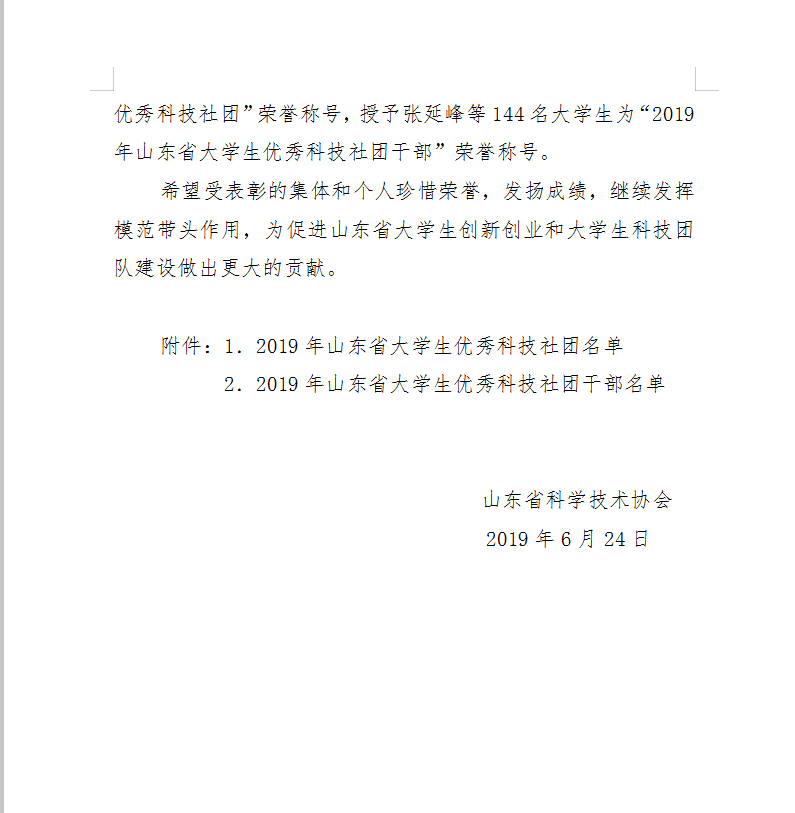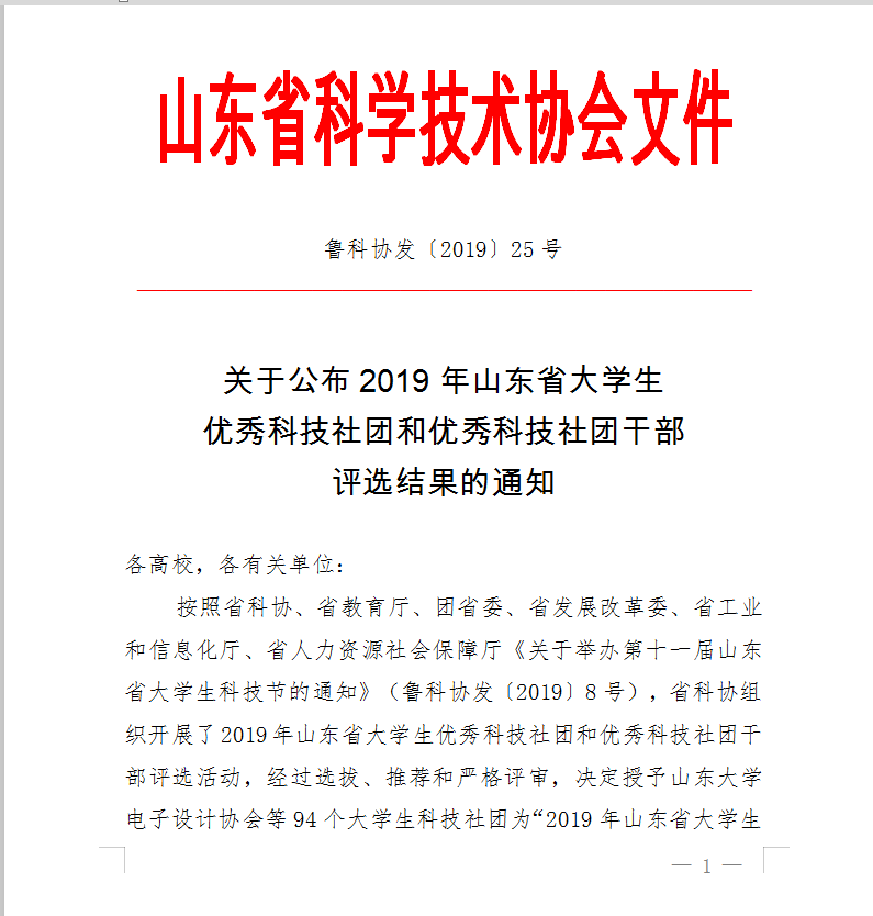 近日,山東省科協評選表彰了2019年山東省大學生優秀科技社團和優秀科技社團干部,我院機器人創新協會獲得“2019年山東省大學生優秀科技社團”榮譽稱號,機器人創新協會會長賈磊和大學生發明創新協會會長劉志尊獲得“2019年山東省大學生優秀科技社團干部”榮譽稱號。希望學院廣大學生社團和社團干部以我院獲獎的社團和社團干部為榜樣,努力進取,為促進學院大學生創新創業和大學生科技團隊建設做出更大貢獻。