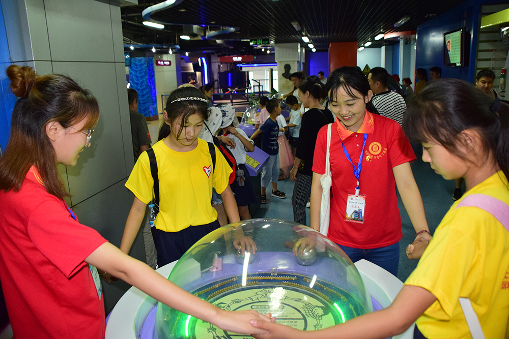 科技成果親身體驗,培養興趣探索未知。社會實踐隊員攜手小朋友走進山東省科技館開展體驗學習。山東省科技館是我省傳播普及科學知識的主要陣地,是立足陣地科普、流動科普、數字科普、資源建設“四位一體”的現代科技館。同時,科技館也為志愿者提供更多發揮專業優勢的志愿服務崗位,讓志愿者們學以致用,學用相長,堅持在周末、節假日等時間節點,開展志愿服務活動。克萊因瓶、彎曲的水流、無源之水、錐體上滾……琳瑯滿目的科技展品讓孩子們迫不及待地投入到觀察與探索當中,他們認真操作展品,仔細了解原理,深刻感受科技迅速發展給生活帶來的巨大變化。為避免在人群中走失,隊員們絲毫不懈怠,陪同孩子們一同參與到科技展當中。