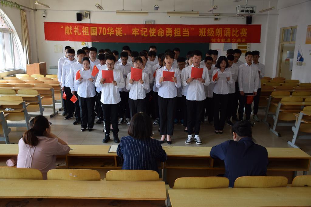 9月16日,城市軌道交通系舉辦了“獻禮祖國70華誕,牢記使命勇擔當”主題朗誦比賽。系學工辦主任兼團總支書記張娜,輔導員武文玉、孫梅玲出席活動。