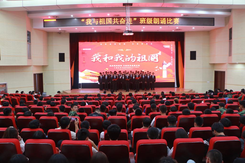 9月25日中午,“我與祖國共奮進”班級朗誦比賽在西報告廳舉行。經過前期層層選拔,有15支隊伍脫穎而出進入決賽。比賽中,朗誦《盛世中華》磅礴大氣、婉轉流長,激情和溫情并存,表達了對偉大祖國的衷心依戀和真誠歌頌。《少年中國》鏗鏘有力,熱血沸騰,同學們把對祖國的熱愛、對理想的追求融入到字里行間,以充沛飽滿的感情,自信大方的形象,展現了中國少年的風采。《風雨七十現光榮》《春風勁吹志昂揚》《我愛我的祖國》《歌頌祖國》《祖國頌》《東方蓬勃》等朗誦將比賽一次又一次的推向高潮,贏得了評委老師和同學們的陣陣掌聲,獲得一致好評。