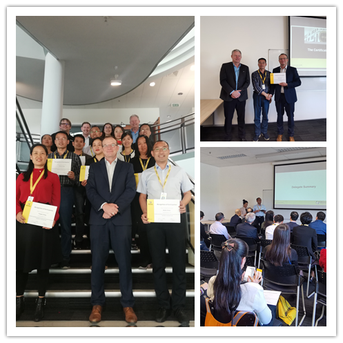 11月11日,中新示范項目總監Tony O’Brien和他的主題專家團隊主持召開項目總結大會和告別儀式,新西蘭懷卡托理工學院執行校長David Christiansen為每一個教師頒發證書并合影,我院教師團隊團長張為賓做主題發言答謝。