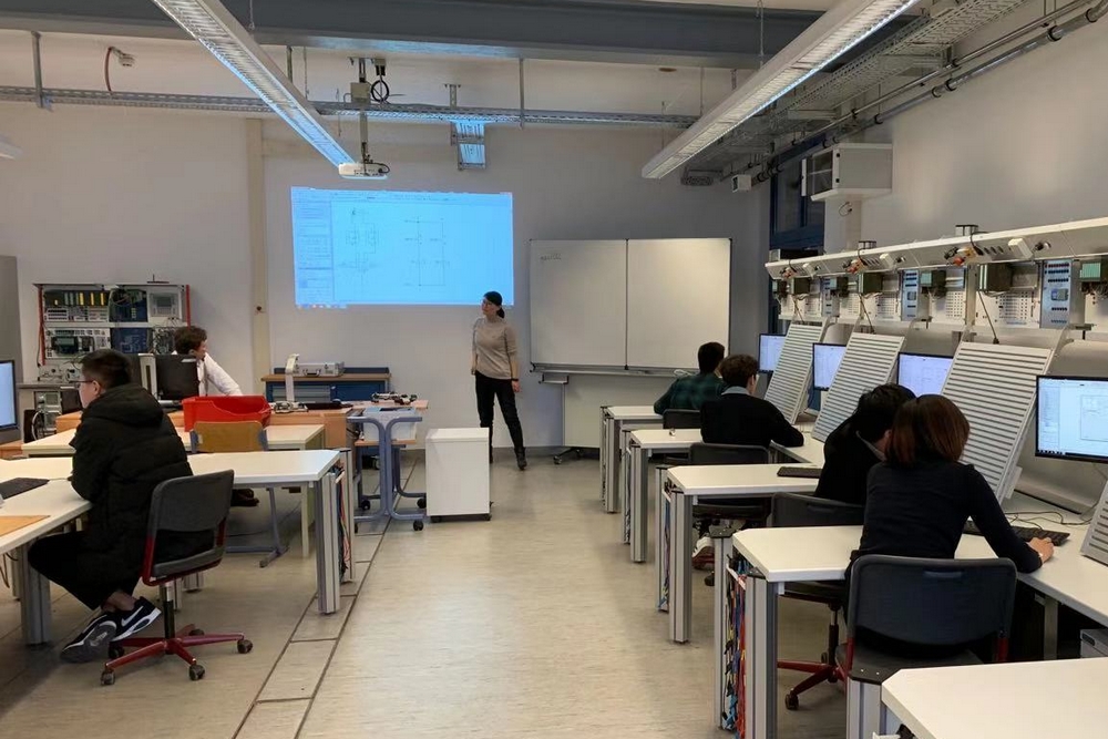 交流期間,師生參觀了蘭茨胡特最大的綜合技能學校,深入學習德國主流職業教育經驗、最新的職業教育理念、教育技術發展趨勢、教育技術應用的先進經驗、教育技術最新應用案例。參觀了GEWO與寶馬公司,學習工業4.0時代機器人與智能制造技術在制造類專業的應用,更好了解了生產技術對現在和未來的需求。深入德國課堂,與德國學生共同學習電氣課程,重點學習了由蘭茨胡特機械學校副校長Postruznik Stanislav講解的德國電氣繪圖步驟及繪圖軟件的使用方法。與德國師生共同完成了小型鋸床的設計與加工項目,進行了金屬加工比賽與自動化設計比賽,我院學生獲得1個一等獎,2個三等獎。