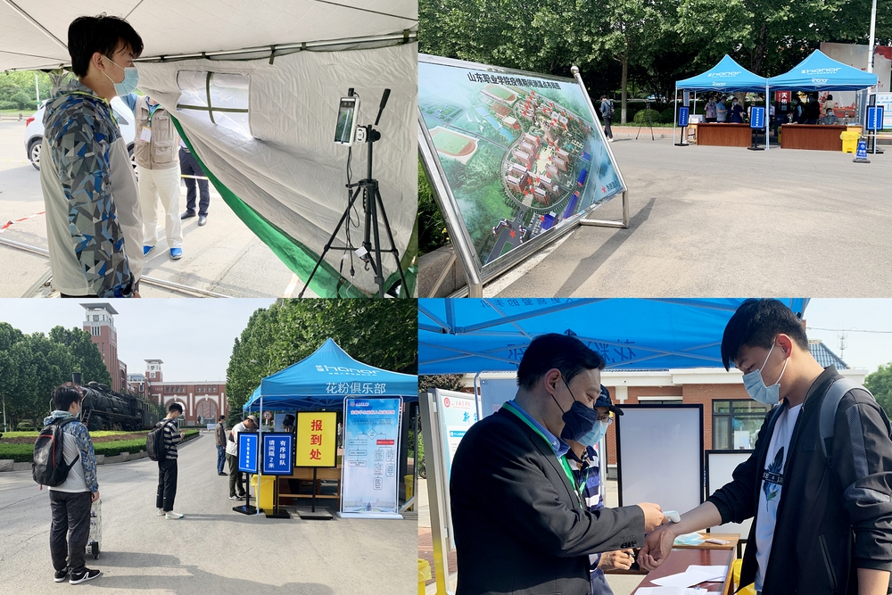 “歡迎回家!”5月16日,我院迎來春季學期首批返校76名學生。一大早,老師們已經在校門口等候。校門外專門設置了醒目的學生通道,防護防疫物品均準備到位。按照報到流程,同學們經過測量體溫和消毒后,重返闊別已久的校園。