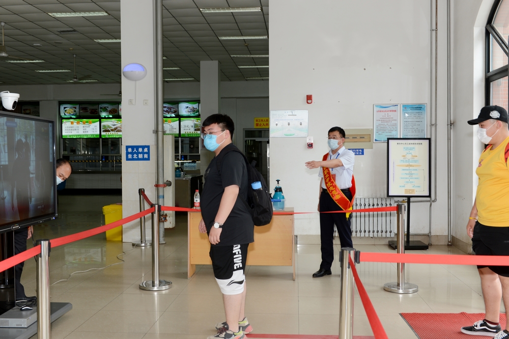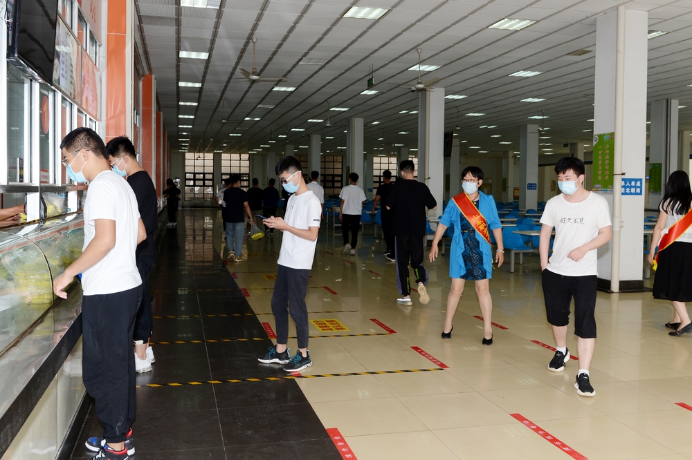 學院黨委高度重視返校學生在校期間的安全健康,針對中午就餐高峰期秩序安全,機關黨總支主動擔當、主動上前,每日安排一定數量黨員到餐廳服務,引導師生有序進出餐廳,嚴格體溫檢測,嚴格手部清潔,保持安全距離排隊取餐,堂食在指定區域、單人單座、同一方向用餐。