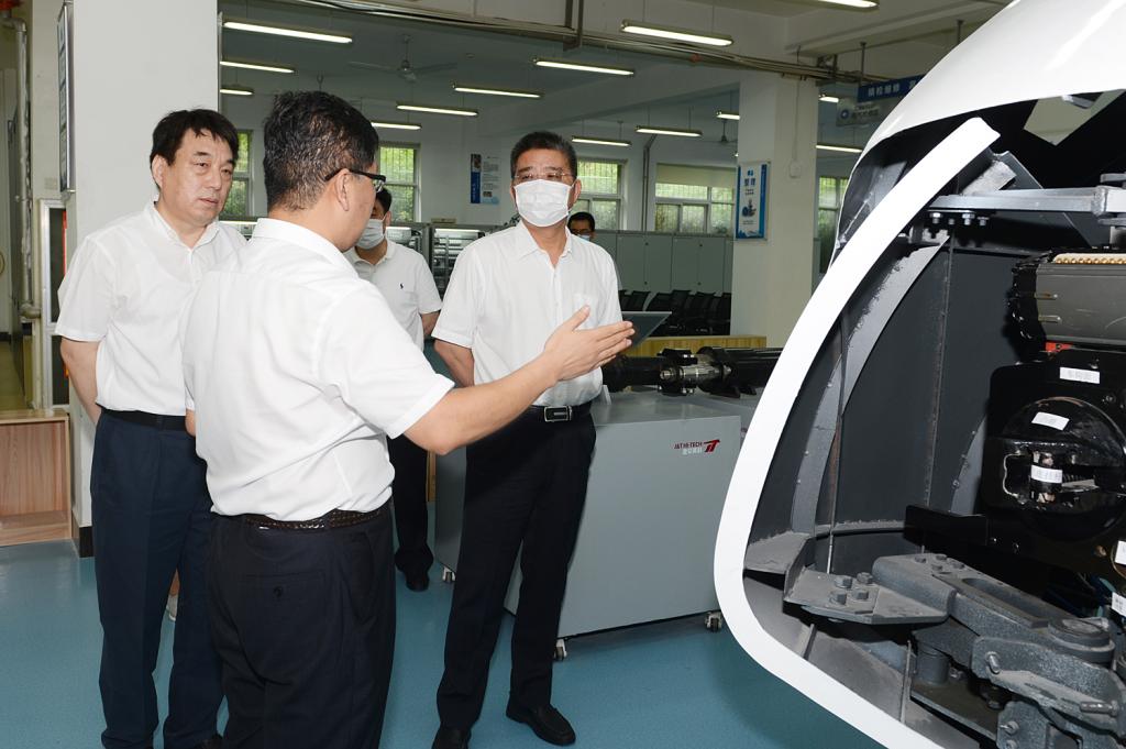陳子季先后參觀了學校“復興號”動車組機械師實訓室和軌道交通實驗實訓中心,每到一處都認真聽取實驗實訓室建設情況、實訓教學開展情況等介紹,詳細詢問人才培養、專業建設與行業產業發展對接情況等。