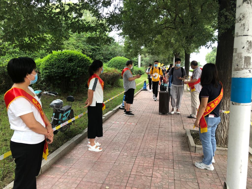 學生返校的三天,從校內到校外,從清晨到黃昏,黨員志愿者們全程堅守在服務學生入校的先鋒崗位上,幫助維持現場秩序、測量體溫、檢驗健康綠碼、引導學生規范入校。他們熱情洋溢,耐心解答學生的疑慮,恪盡職守,黨徽在志愿者中熠熠閃耀,黨旗在志愿服務一線高高飄揚。