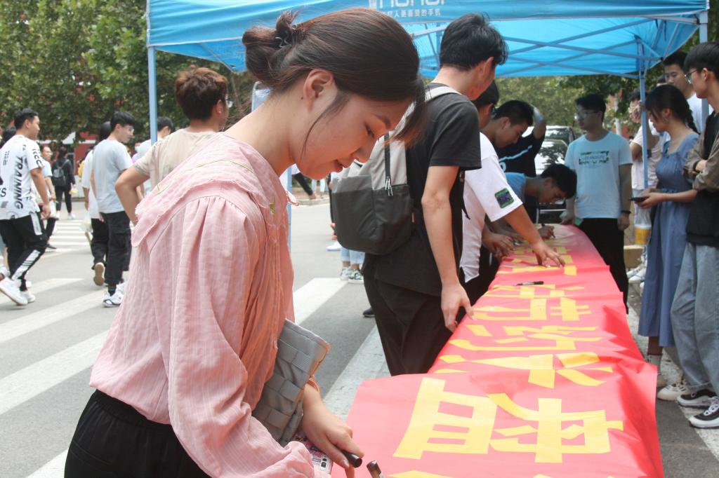 9月15日,在餐廳南門舉行了“光盤行動”簽字活動,學校領導、老師和同學們都積極主動的在橫幅上簽名,以實際行動支持“光盤行動”,表現了勤儉節約不浪費的決心。為增強活動的影響力,帶動廣大同學自覺自愿加入到 “光盤行動”中,下一步我校還將開展隨拍校園光盤活動以及線上光盤征集評選活動,并為優秀作品發放精美小禮品。