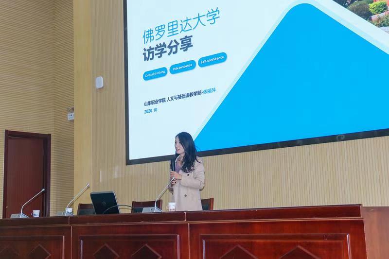 張麗萍和王玉青兩位教師分別被山東省教育廳選派為國際訪問學者,于2019年至2020年到美國佛羅里達大學和普渡大學參加國際交流訪問,進行了為期一年的研修生活。兩位教師在主動完成教書育人工作的同時,積極參與課題研究、論文撰寫、成果申報等,取得了顯著的教學科研成果。她們在分享訪學經歷的同時,還向大家交流了如何做好教學和科研。參加交流的老師積極互動,均表示受益匪淺。
