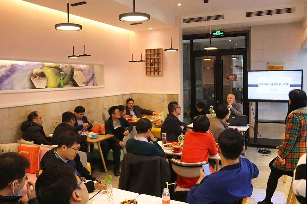 沙龍活動上,張德夫博士分享了自己在英語科技論文寫作中的經驗和心得。他以自己投稿SCI期刊的經歷為例,細致講解了科研流程,如何滿足審稿人的要求,對句子、段落、圖表的寫作要求,以及引言、方法、結果、討論等論文各部分的寫作注意事項。張博士就如何把科研成果用英文撰寫出來和高水平英語論文發表的技巧進行了全面介紹。