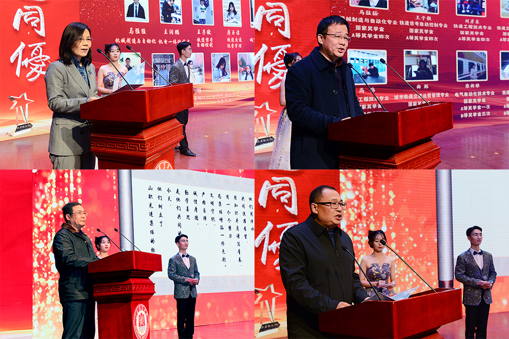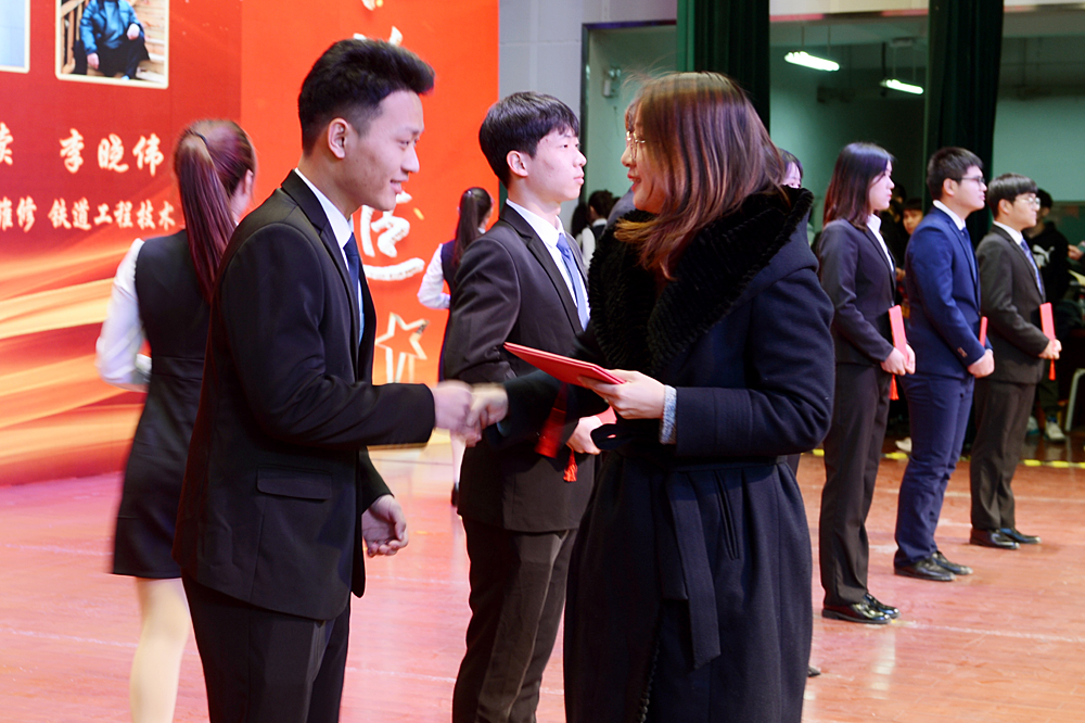 中國鐵路濟南局集團有限公司團委書記胡述沛、濟南軌道交通集團運營公司人力資源部副部長劉潤澤,院長秦河、黨委副書記徐冬、紀委書記祝介安、全國“五一”勞動獎章獲得者李增足教授、全國模范教師艾菊蘭等領導和嘉賓向獲獎同學頒發榮譽證書。