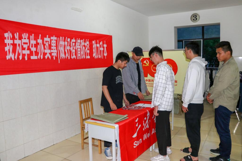 5月7日,三味書院教師黨員和志愿者為即將參加升本考試的考生們準備了防疫口罩,確保同學們考試期間的防疫安全。老師們積極開展心理疏導,為考生們排解壓力,放松心情,做好應考準備。