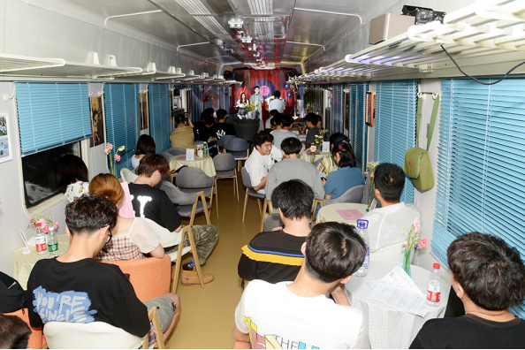 5月13日,第一屆火車音樂節民謠專場在網紅打卡點——火車“曾經咖啡吧”開場。黨委書記高磊、副院長郭培謙共同陪伴同學們,一起感受民謠情懷。