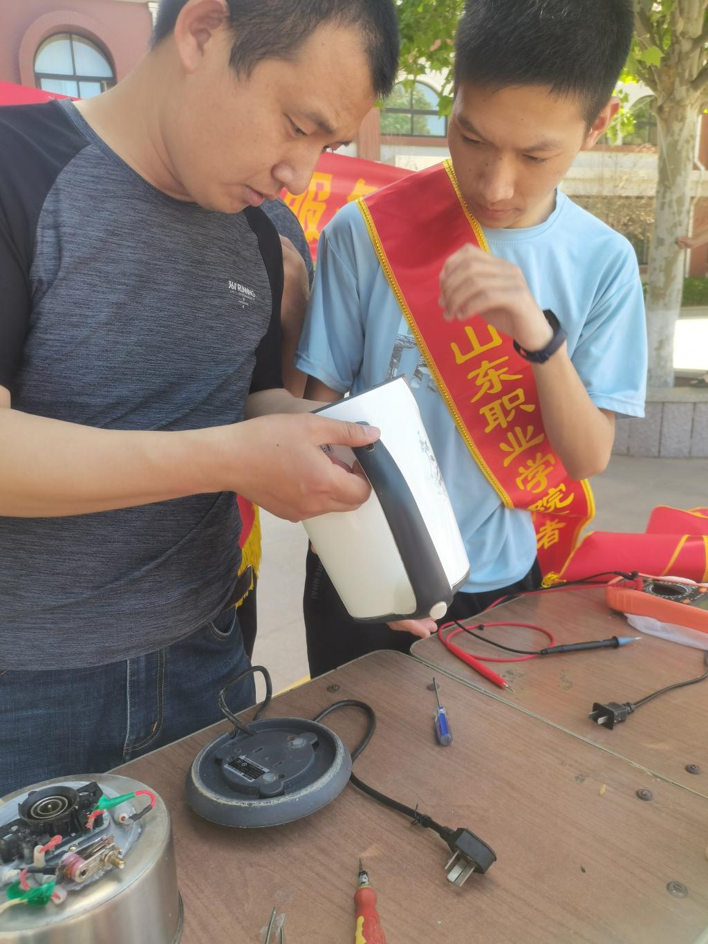 活動現場,志愿服務團隊運用專業知識,為師生維修了熱水壺、電子秤、打印機、電飯鍋、電暖器等,得到了師生們的一致好評。同時,老師們現場教學,與同學們共同查找小家電損壞原因,耐心細致地向同學們傳授其中所涉及的專業知識,同學們認真傾聽、用心記錄,受益匪淺。