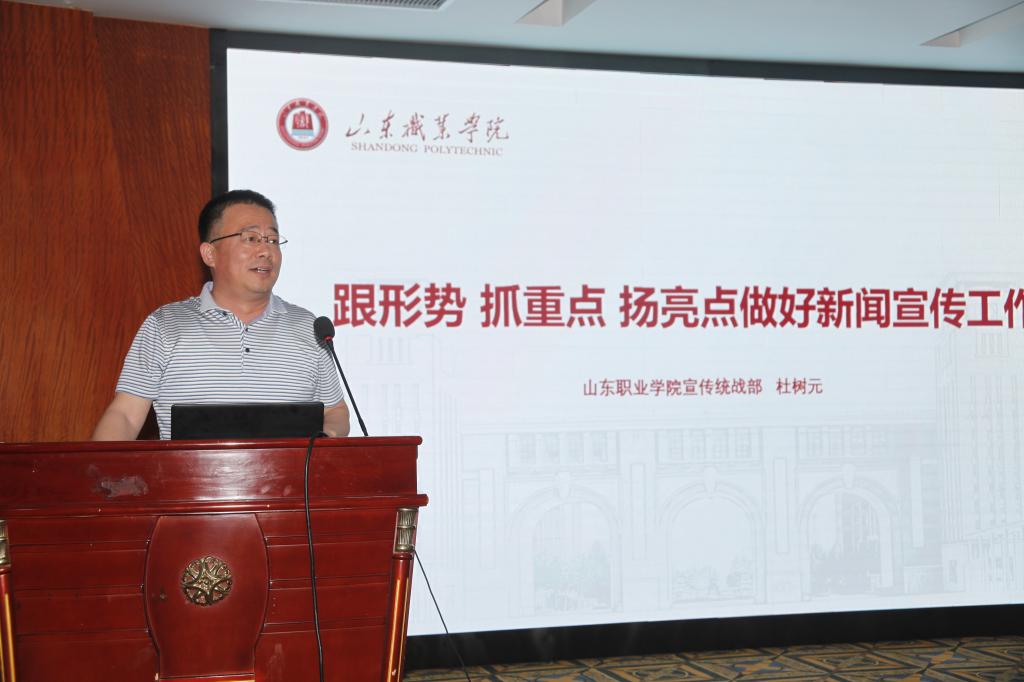 會議作了全媒體時代高校輿情引導與處置專題培訓,對新聞宣傳工作通報制度相關指標體系進行了解讀說明。
