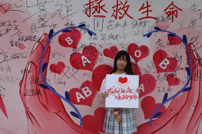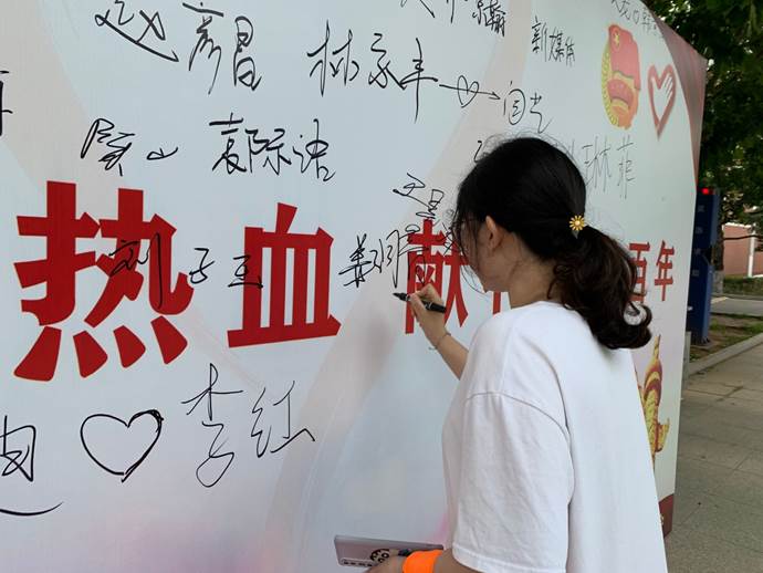 a一級黃色片:獻血結束后,同學們紛紛在簽名墻上簽名留言。