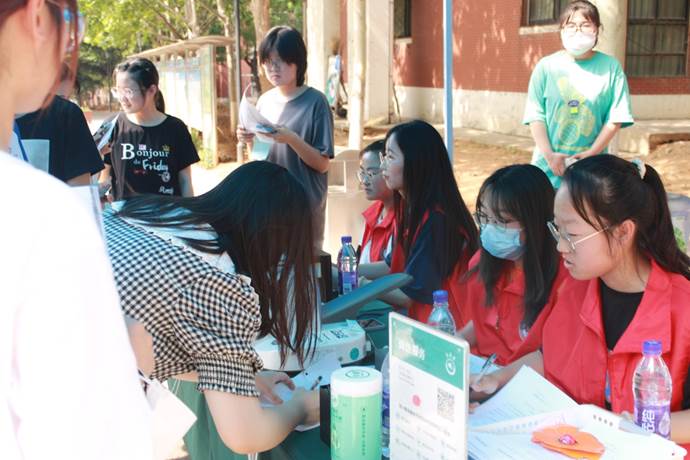 按照疫情常態化防控的要求,本次獻血活動由各書院分批次進行。在獻血活動現場,各項準備活動有序進行。獻血者來到獻血車前,登記個人相關信息,填寫新冠疫情調查表,并由醫務人員測量血壓、采血檢驗。獻血過程中還為每位同學準備了一杯糖水。醫務人員在采血的同時為同學們科普獻血知識,囑咐相關注意事項。