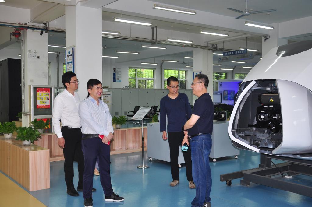 座談后,黃培一行實地考察了動車組機械師實訓中心、SMT生產性實訓基地、“車同軌”鐵路技術史館、城市軌道交通實訓中心和新一代信息技術產業學院。