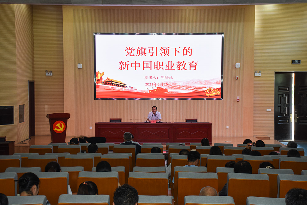 6月26日下午,副院長郭培謙在圖書行政樓東報告廳以《黨旗引領下的新中國職業教育》為題講授專題黨課。有關職能處室、二級學院、書院黨員參加。
