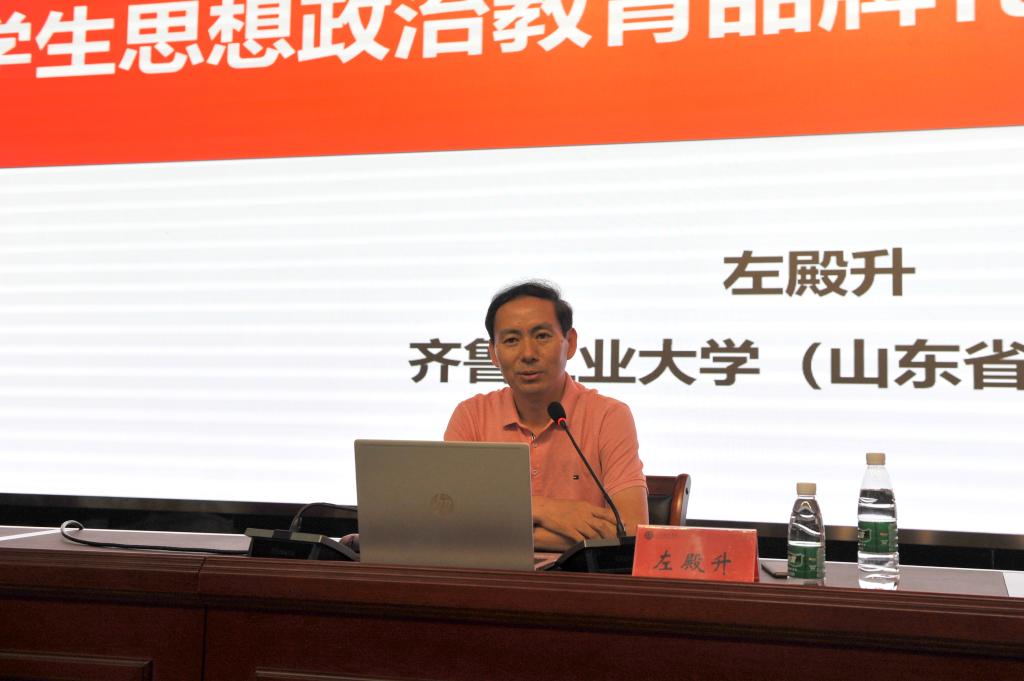 齊魯工業大學左殿升以《干事業做學問--大學生思想政治工作品牌化建設的實踐與思考》為題作了報告。他介紹了山東省輔導員名師工作室建設、教育部思政精品建設、教育部思政精品文庫建設情況,重點結合齊魯工業大學省級網絡名師工作室、“鴻雁”大學生標兵團等建設經驗,就輔導員名師工作室建設的頂層設計、隊伍建設、品牌創建、項目申報等方面進行了分享。