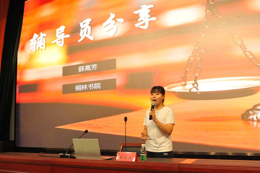 桐林書院薛高芳、東嶺書院武文玉、南山書院王皓月分別以《輔導員工作中涉及的法律問題》《輔導員主要工作流程》《用心做工作 用愛促成長》為題,與輔導員們進行了經驗交流,分享各自工作感悟。