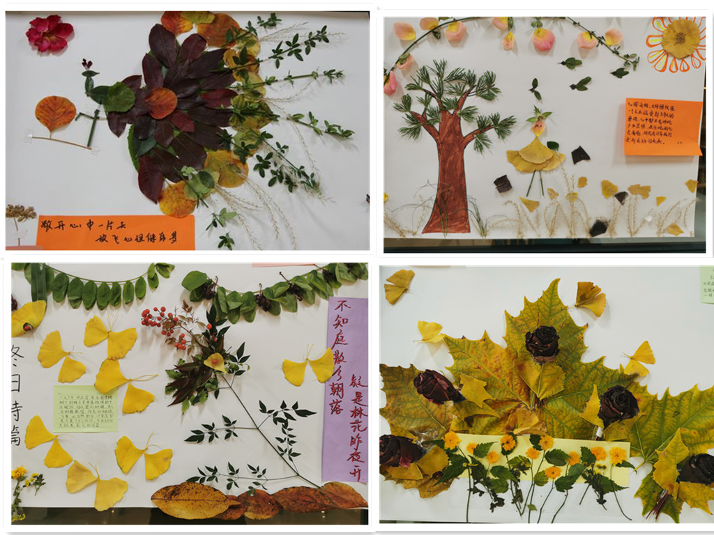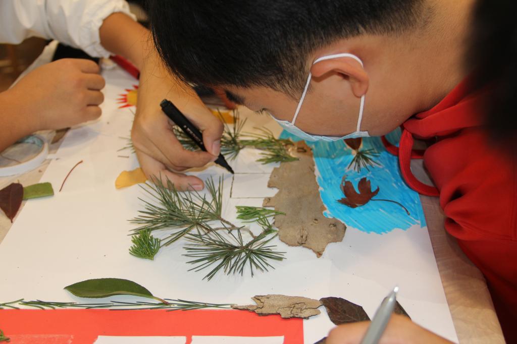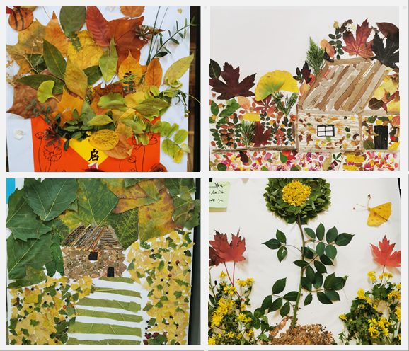 活動過程中同學們利用秋之落葉,繪冬之暖心事。剪、畫、貼、寫,盡情發揮想象力,相互合作,精心的制作著一幅幅充滿夢幻色彩的作品。創作時同學們體驗專注的自己,感受生命與藝術的融合,體驗靜心與藝術的魅力,共同創造心靈之美。