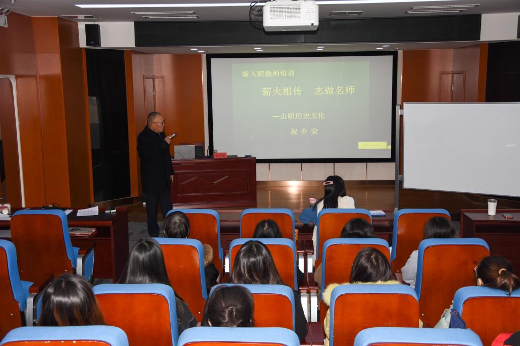 紀委書記祝介安從學校的歷史、優秀校友事跡及校園文化傳承等方面進行了詳細的介紹,希望新教師能夠傳承好山職文化,在新的工作崗位上發光發熱。