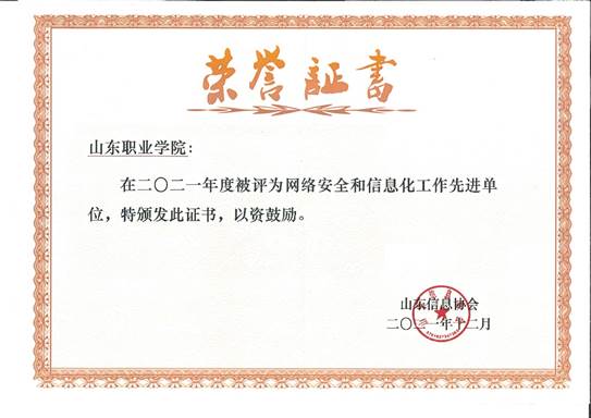 2021年,學校高度重視網絡安全和信息化工作,堅持以習近平新時代中國特色社會主義思想為指導,認真落實立德樹人根本任務,以“雙高”建設為契機,深入貫徹落實《中國教育現代化 2035》《教育信息化2.0行動計劃》,結合學校實際,不斷升級“智慧山職”平臺,著力推進教學信息化建設和智慧校園建設,深入挖掘和分析數據,實現數據互聯互通互用,推進治理能力現代化。學校與濟南市公安局高新分局共建了山東省高職院校首個“楓橋式網警工作站”,獲評智慧教育示范校創建單位。