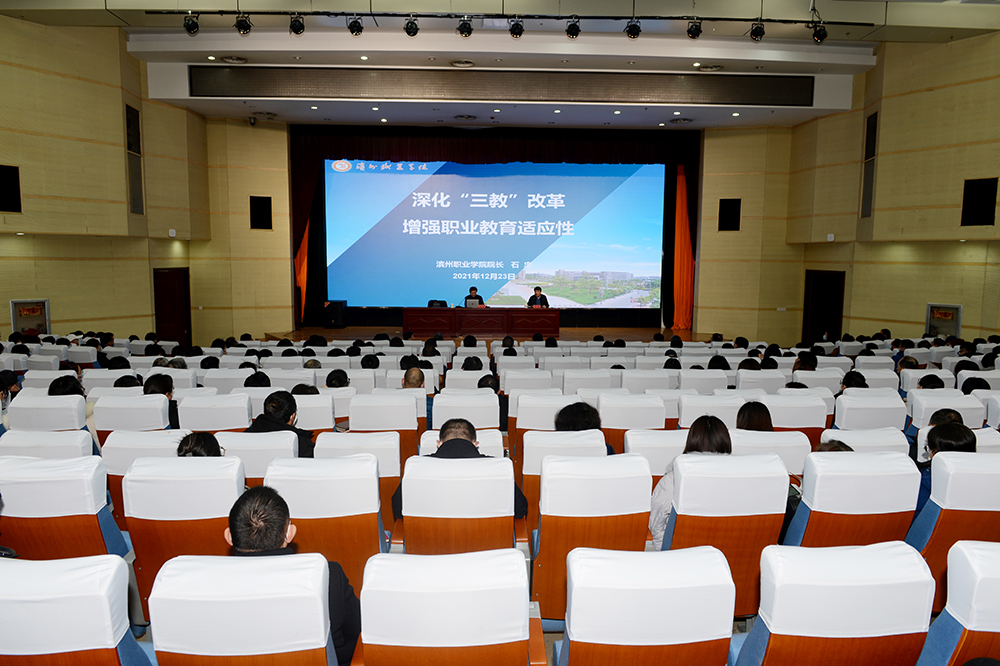 為進一步深化職業教育改革,優化辦學要素,提升教師教學能力,12月23日,我校邀請濱州職業學院院長石忠來校作專題報告,報告會由黨委書記高磊主持。