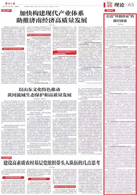 12月30日,《濟南日報》A5理論版刊發了我校科學技術與社會服務處李白露副處長的理論文章《濟南市打造“科創濟南”的路徑探索》。