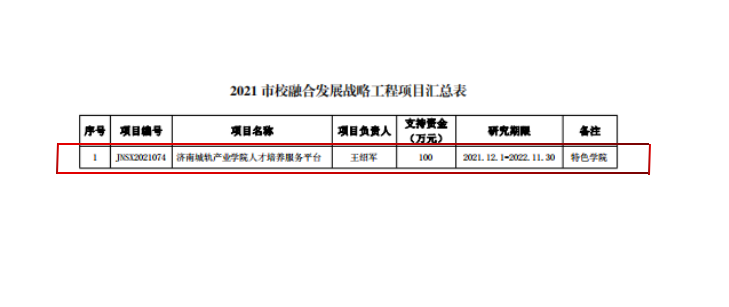 濟南市市校融合發展戰略工程項目是深入貫徹落實濟南市人民政府關于貫徹落實強省會戰略的重要舉措。學校將依托市校融合發展戰略工程項目,深化市校融合發展,助力科創濟南、智造濟南、文化濟南、生態濟南、康養濟南“五個濟南”建設,推動學校和區域經濟高質量發展,不斷提升服務新時代現代化強省能力和貢獻度。