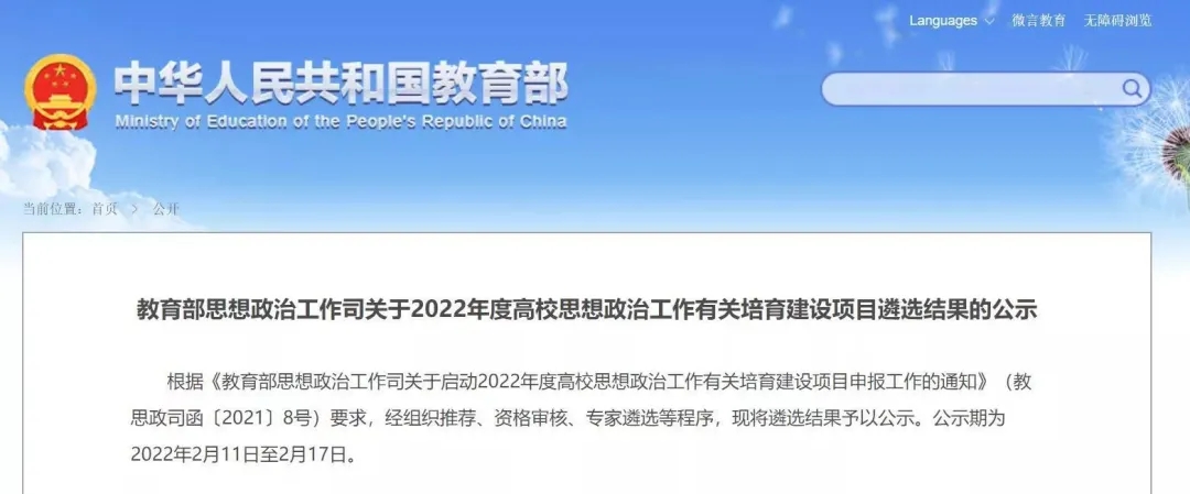 喜報!獲批教育部高校思想政治工作精品項目