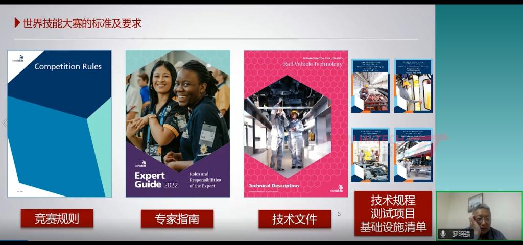 培訓班邀請到了第46屆世賽軌道車輛技術賽項中國技術專家組長、中華人民共和國第一屆職業技能大賽軌道車輛技術項目裁判長羅昭強大師,昆明地鐵運營有限公司春城首席技師劉偉大師,分別作了《世賽軌道車輛技術的發展趨勢與國內成果轉化應用》《淺談X證書在高技能人才培養方向的實際應用》主題分享。我校城市軌道交通學院副院長張偉結合2020年《中國城市軌道交通智慧城軌發展綱要》,做了《智慧地鐵——推動城軌高質量發展》主題分享,副院長于楊則從我校建設城市軌道交通車輛高水平專業群、打造一流實訓基地、助推高水平專業群建設出發,介紹了實訓基地建設的必要性、實訓基地建設路徑及實訓基地應用成效。