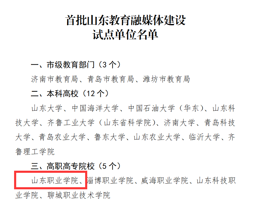 5月5日,山東省教育廳印發了《關于公布首批山東教育融媒體建設試點單位名單的通知》,公布了首批山東教育融媒體建設試點單位名單,我校成功赫然在列。