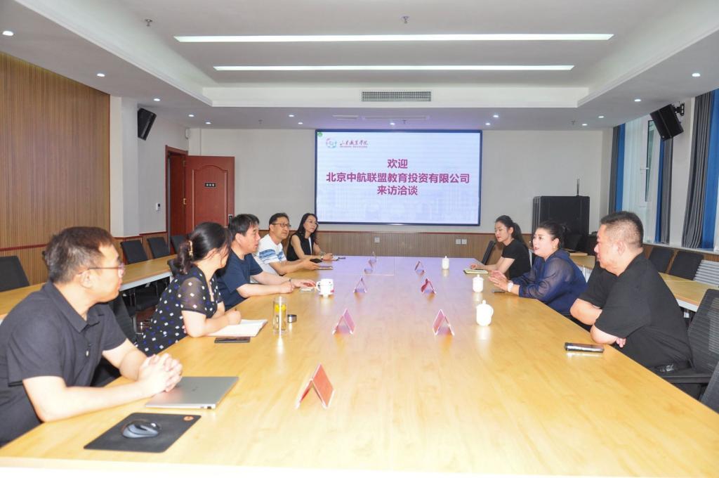 6月28日,北京中航聯盟教育投資有限公司總經理金枝一行來校洽談校企合作事宜,黨委書記高磊出席會見。