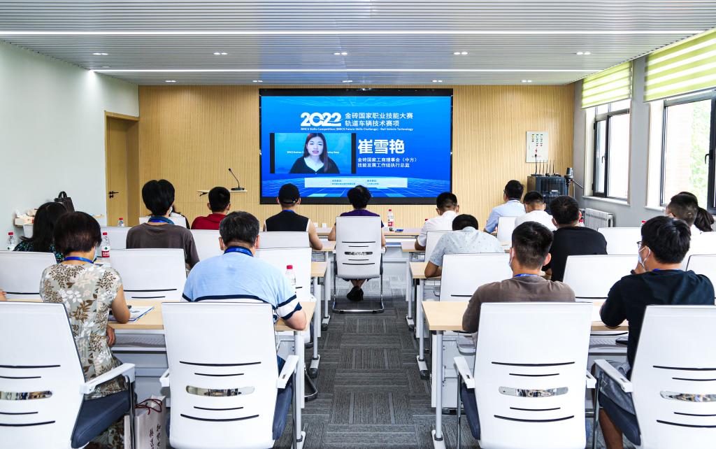 金磚國家工商理事會(中方)技能發展工作組執行總監崔雪艷線上發表致辭,并宣布2022年金磚國家職業技能大賽軌道車輛技術賽項賽前技能培訓正式開班。