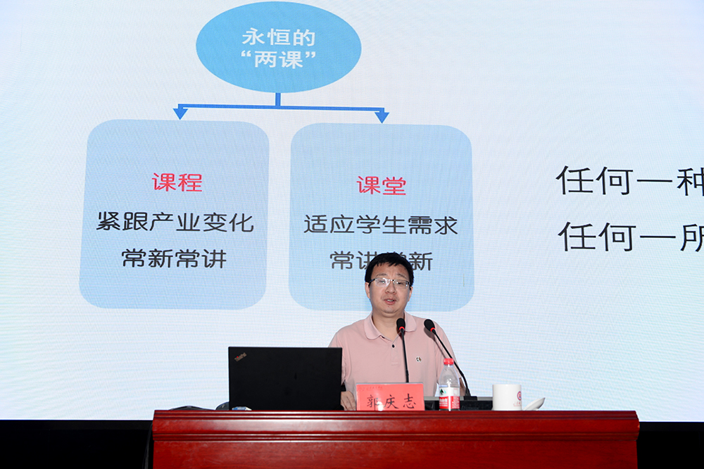 開班儀式結束后,山東省職業技術教育理論研究中心秘書長、副教授郭慶志以《從職業教育法看職業教育發展的形勢與政策》為題做首場專題輔導報告。總結分析了我國當前職業教育的形勢,重點就新修訂的職教法的10個突破進行了詳細介紹,并從找準定位、敢于爭先、真育英才、教師成長等方面對學校的發展進行了思考。整場報告內容豐富、緊密聯系實際,對全面準確領會新職教法如何引領推動職業教育高質量發展有極大啟發和指導意義。