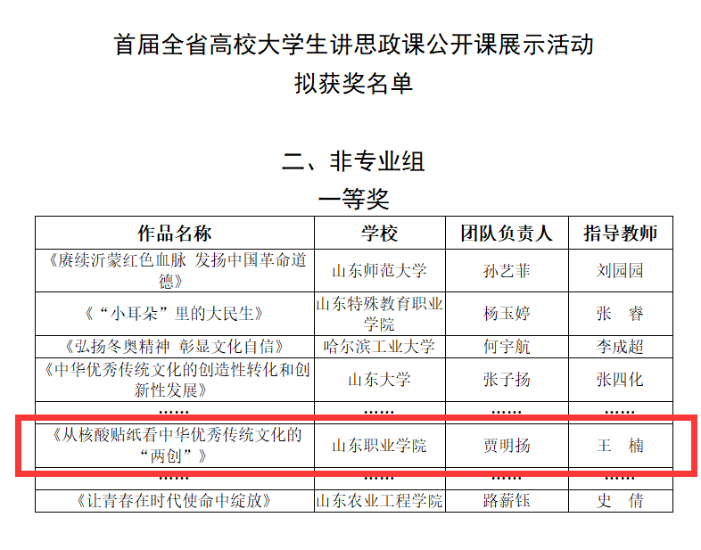 近日,山東省教育廳對首屆全省高校大學生講思政課公開課展示活動結果進行了公示,我校馬克思主義學院選送的3件作品分別獲得省一等獎、二等獎、三等獎。