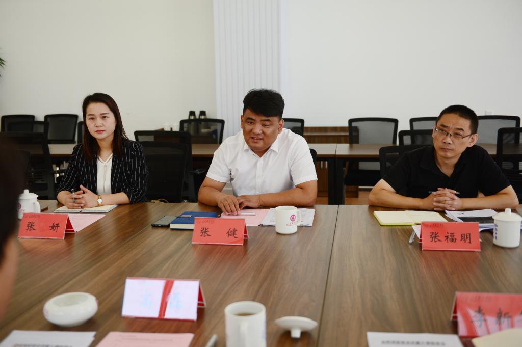 高磊對張健一行的到來表示歡迎,從學校的辦學特色與優勢、深化產教融合與校企合作等方面介紹了學校情況。他指出,近年來學校不斷深化產教融合、全面開展校企合作,充分發揮校企雙元育人作用,以“人文立身、技術報國”為校訓,堅持開放辦學,推進學校高質量發展,使人才培養質量不斷提升。
