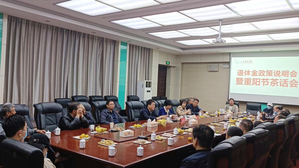 10月4日重陽節,我校在解放路校區會議中心召開了退休金政策說明會暨重陽節茶話會,20余位退休職工參加座談,黨委書記高磊、副院長祝瑞花出席會議。