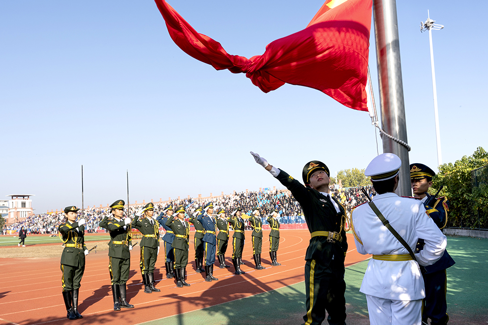 25日上午,在嘹亮的國歌聲中,鮮艷的五星紅旗冉冉升起,田徑運動會正式拉開帷幕。