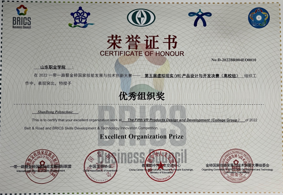 11月11日,2022一帶一路暨金磚國家技能發展與技術創新大賽——第五屆虛擬現實(VR)產品設計與開發大賽決賽圓滿落下帷幕。我校代表隊榮獲二等獎,同時獲優秀組織獎。