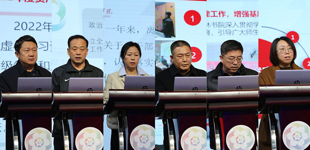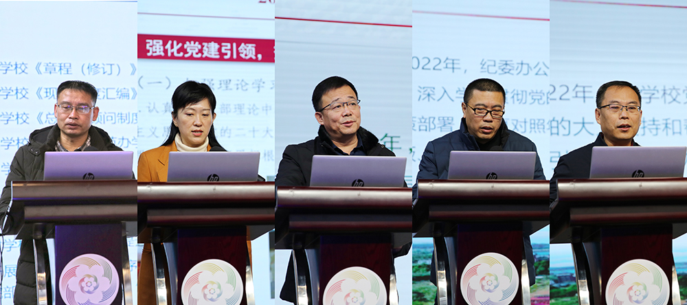學校41位部門負責人分別從2022年度工作情況、存在問題及下一步打算三個部分進行匯報。展現工作特色亮點,查找工作中存在的問題,明確發展思路,提出了2023年工作目標和措施。