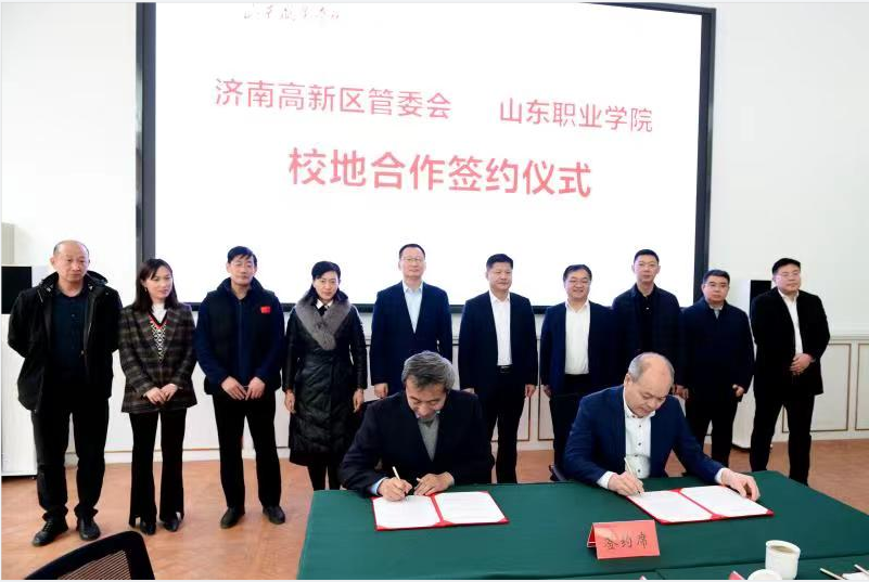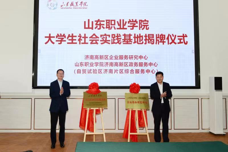 隨后,雙方簽訂了《校地合作協議》,郭培謙與張磊共同為“濟南高新區企業服務研究中心”“山東職業學院濟南高新區政務服務中心(自貿試驗區濟南片區綜合服務中心)大學生社會實踐基地”揭牌。