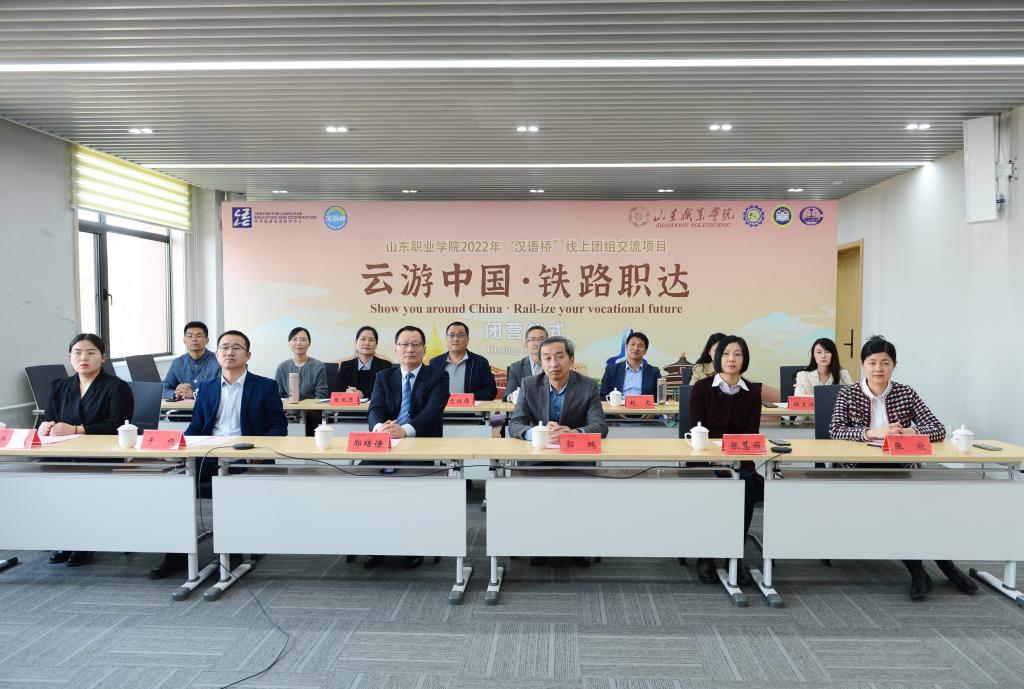 3月9日下午,由教育部中外語言交流合作中心主辦、山東職業學院承辦的“漢語橋”線上團組交流項目——“云游中國·鐵路職達”閉營。中鐵資源集團蒙古新鑫有限責任公司人力資源部部長楊建、副部長馬江波,院長郭培謙、副院長郭鵬等出席活動。閉營儀式由國際交流學院院長張欣主持。