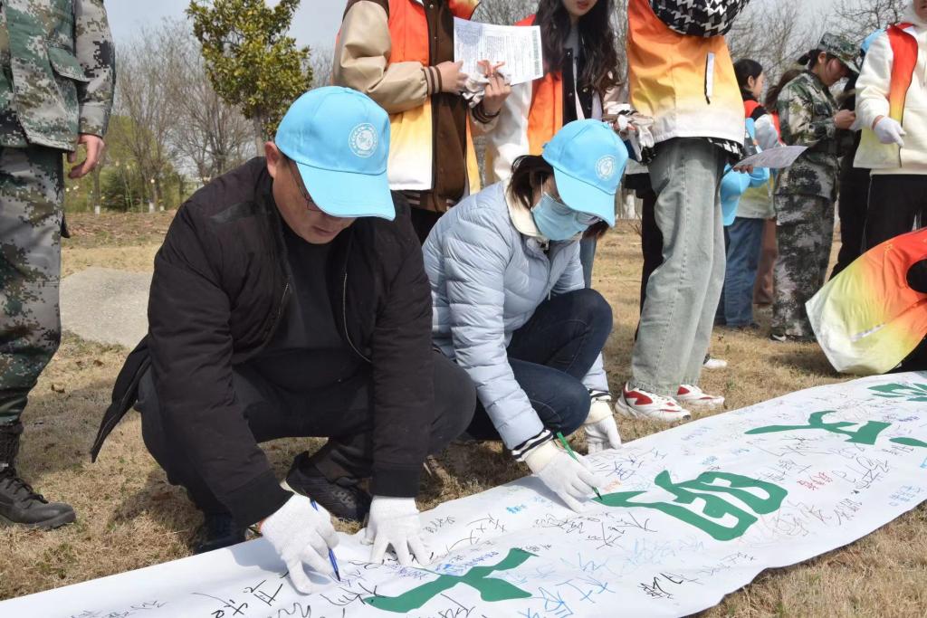 隨后,志愿者們在濕地公園內開展“我為黃河種棵樹”和“凈林凈灘”活動。植樹現場大家分工合作,揮動鐵鍬,培土圍堰,踩實固苗,為這個黃河灘區增添了一抹生機勃勃的綠色。在綠色公益的倡議下,大家宣讀“黃河生態文明十條”,并在條幅上簽名留念。