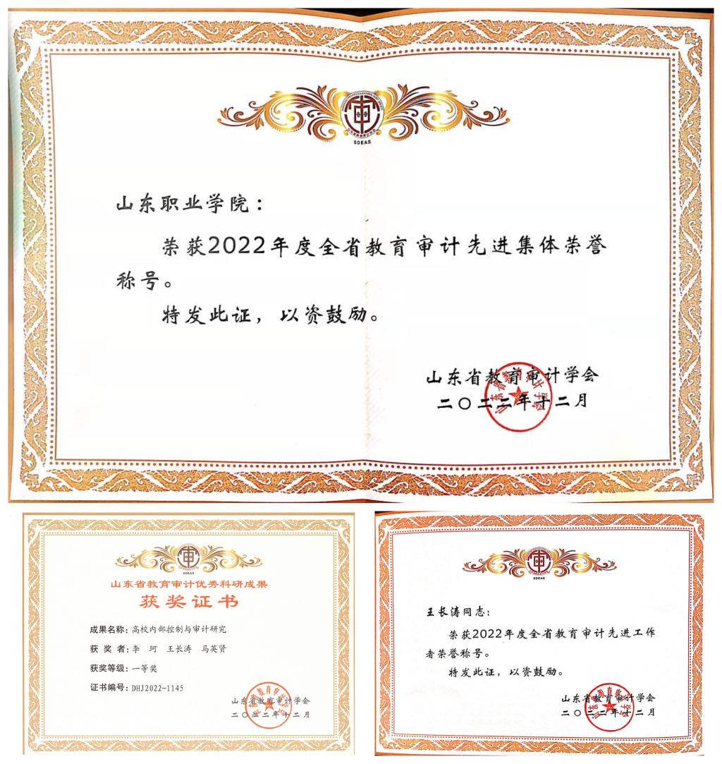 近日,山東省教育審計學會對2022年度全省教育審計系統工作先進集體和先進工作者進行了評比表彰,我校榮獲“2022年度全省教育審計先進集體”,財務處處長王長濤榮獲“2022年度全省教育審計先進工作者”。同時,在山東省教育審計優秀科研成果評獎中,由李珂、王長濤、馬英賢申報的《高校內部控制與審計研究》榮獲課題組科研成果一等獎。