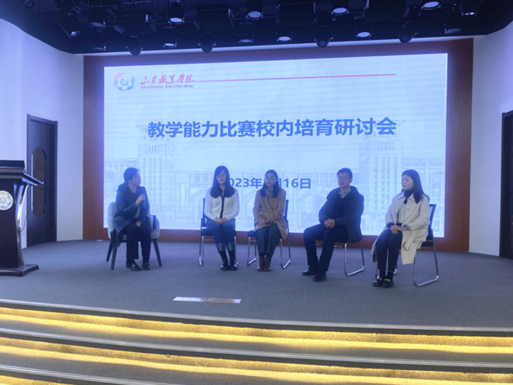 為進一步提升學校教師教學能力,幫助教師們更好地備戰2023年山東省教學能力大賽,3月16日下午,我校在多功能音樂廳舉辦教學能力大賽校內培育研討會,邀請我校2022年省教學能力大賽二等獎獲獎團隊——城市軌道交通運營管理專業團隊分享比賽經驗。活動由教務處處長王秋敏主持。